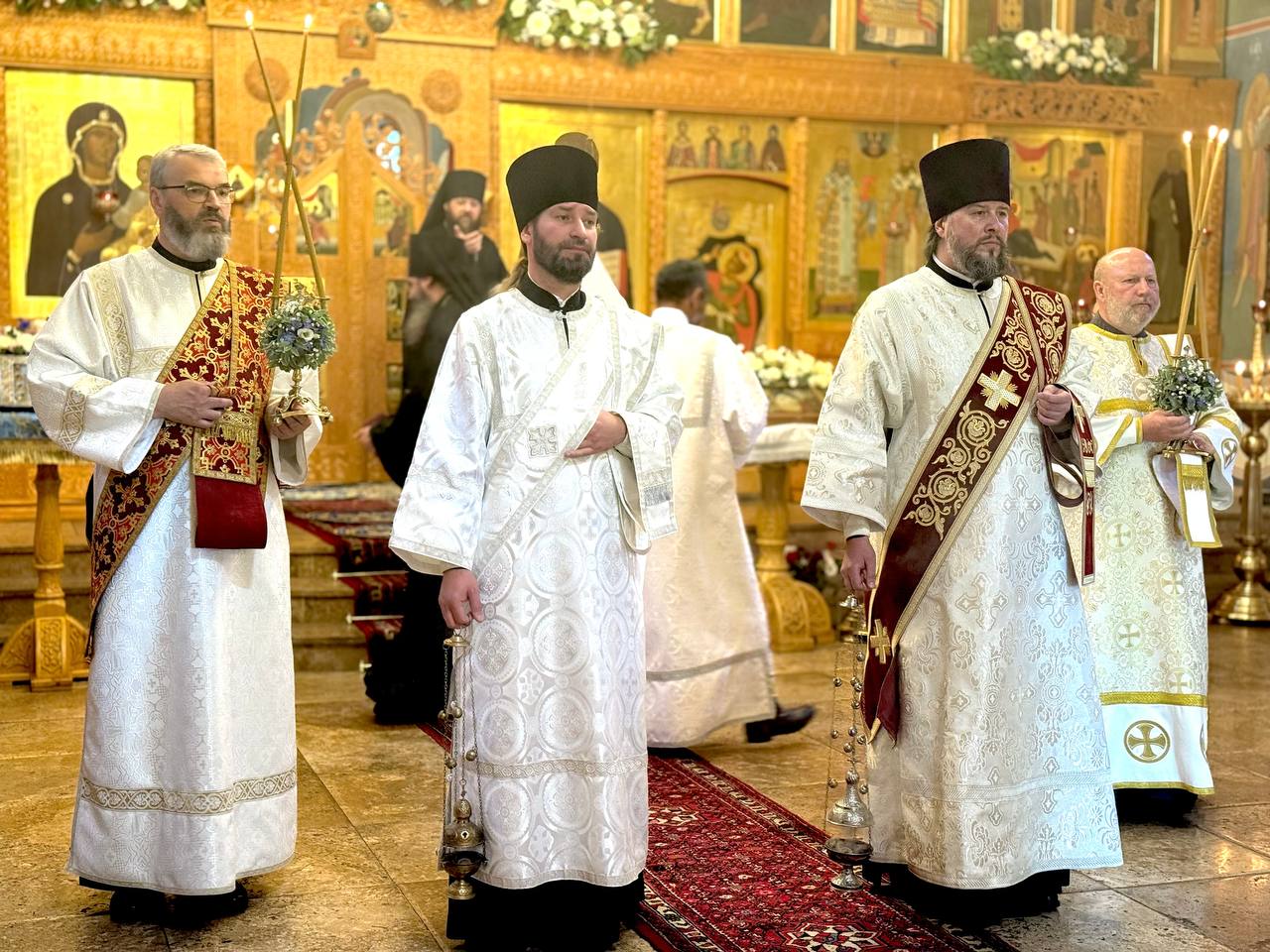 On Sunday, May 11, during the Sunday of the Paralytic, Metropolitan Nicholas led Divine Liturgy at the Nativity of the Mother of God Cathedral in London, with a vigil service held the night before. His Eminence was co-celebrated by the members of the Synod as well as His Eminence Metropolitan Silouan of Great Britain and Ireland (Antiochian Orthodox Church), the cathedral clergy, local representatives of the Local Orthodox Churches, and guests in holy orders.