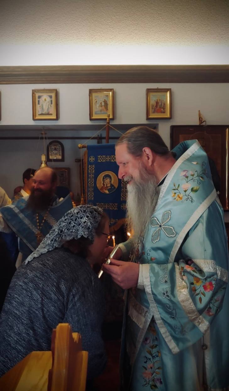 Hieromonk Peter (Karakozov) delivered a sermon, calling the believers to a living faith and trust in God's Providence. After Liturgy, a procession took place around the temple, in which all present participated with reverence. At the end of the celebration, Archbishop Kyrill addressed the congregation with a pastoral message and warmly congratulated all parishioners on the feast day.