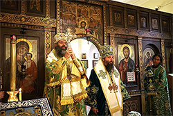 Concelebrating with the First Hierarch of the Russian Church Abroad were His Grace Bishop Kliment of Levski (Vicar of the Bulgarian Diocese in the USA, Canada and Australia), Archpriest Emilian Pocinoc (cleric of the Western European Diocese), Archpriest Elias Gorsky (Rector of Holy Virgin Protection Church in Nyack, NY), Archpriest Serafim Gan (Chancellor of the Synod of Bishops), Archpriest Mark Burachek (rector of Our Lady of Kazan Church in Newark, NJ), Archpriest Andrei Sommer (Dean of the Synodal Cathedral “of the Sign”), Archpriest Vasily Zelenyuk (Rector of Our Lady "Unexpected Joy" Church in Staten Island, NY), and Archpriest Ion Arama (Rector of Annunciation Church in Flushing, NY), Abbot Zosimas (Krampis; Rector of St Sergius Church), Protodeacon Paul Wolkow (cleric of St Seraphim Memorial Church in Sea Cliff, NY), Protodeacon Serge Arlievsky (cathedral cleric), and Protodeacon Eugene Kallaur (cleric of St Seraphim Church), and Deacon Nicholas Ilyin (cleric of Holy Protection Church in Nyack).
