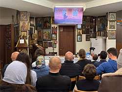 After the moleben, all the parishioners were invited by the parish’s Orthodox youth group to the refectory, where they watched together a historical documentary film about the miraculous Kursk-Root Icon of the Mother of God, spiritually preparing to welcome to the parish in the coming days this great relic of the Russian Orthodox Church Outside of Russia.
