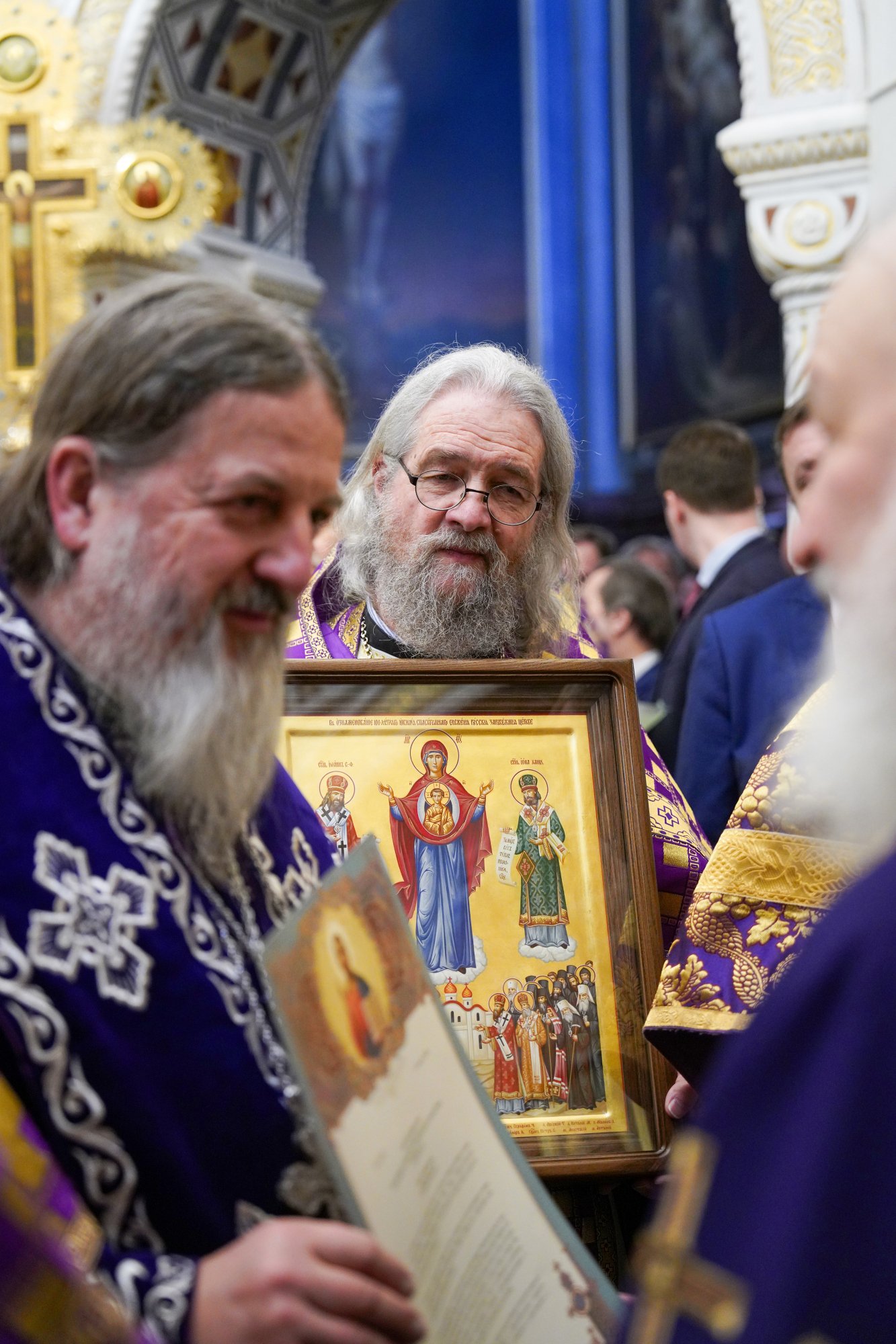 The service was led by His Holiness Patriarch Kirill of Moscow and all Rus', concelebrated by archpastors of the Russian Orthodox Church, representatives of Local Orthodox Churches, and the clergy of the capital city. The service was held under the holy patronage of the “Sovereign” Icon of the Mother of God.