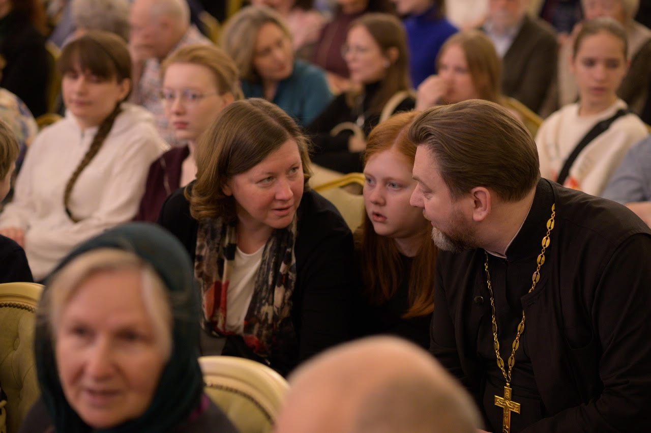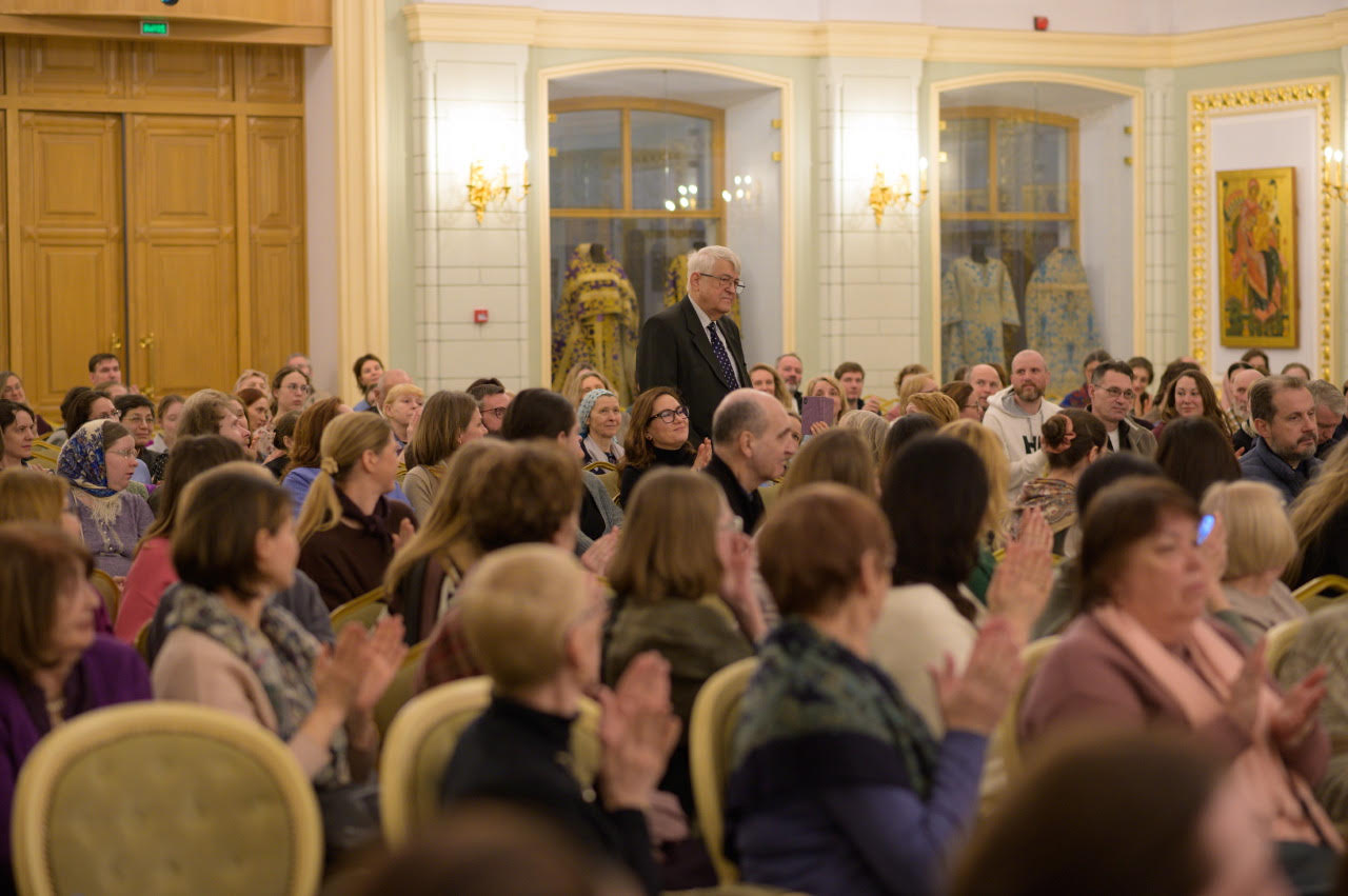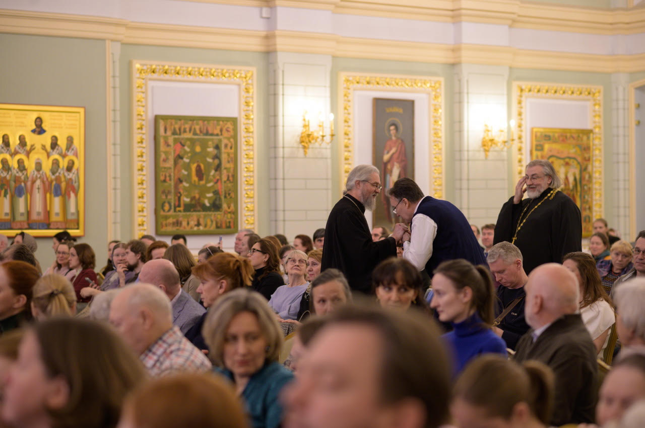 The following day, the second screening of the film “The Aroma of Holiness” took place, this time in the big hall of the Sretensky Theological Seminary. Concurrently with the screening, there was a presentation of the new edition of Archpriest Peter Perekrestov’s book of memoirs about St. John: “Pastor. Teacher. Friend.” As on the previous day, the screening drew a huge crowd.