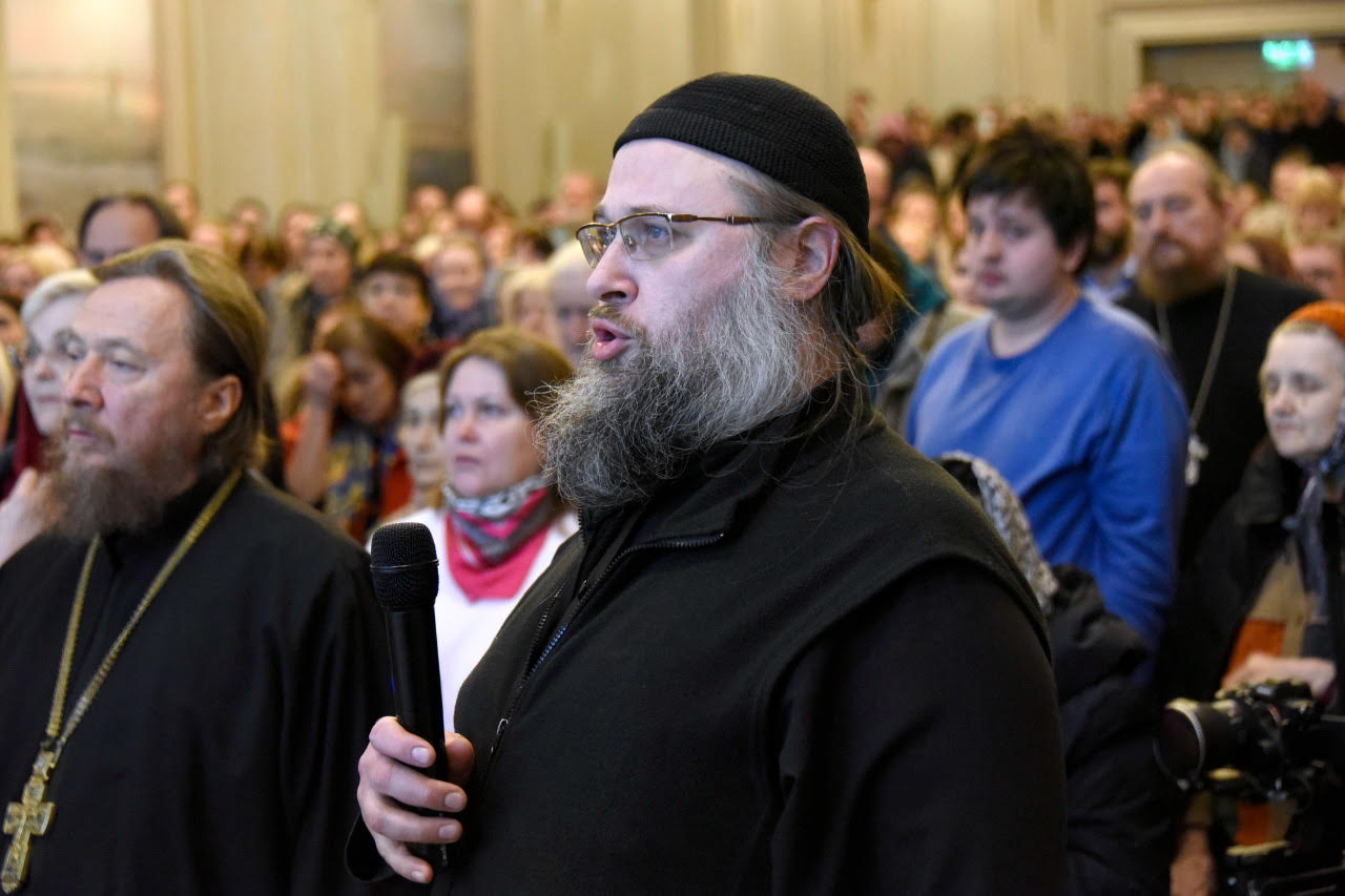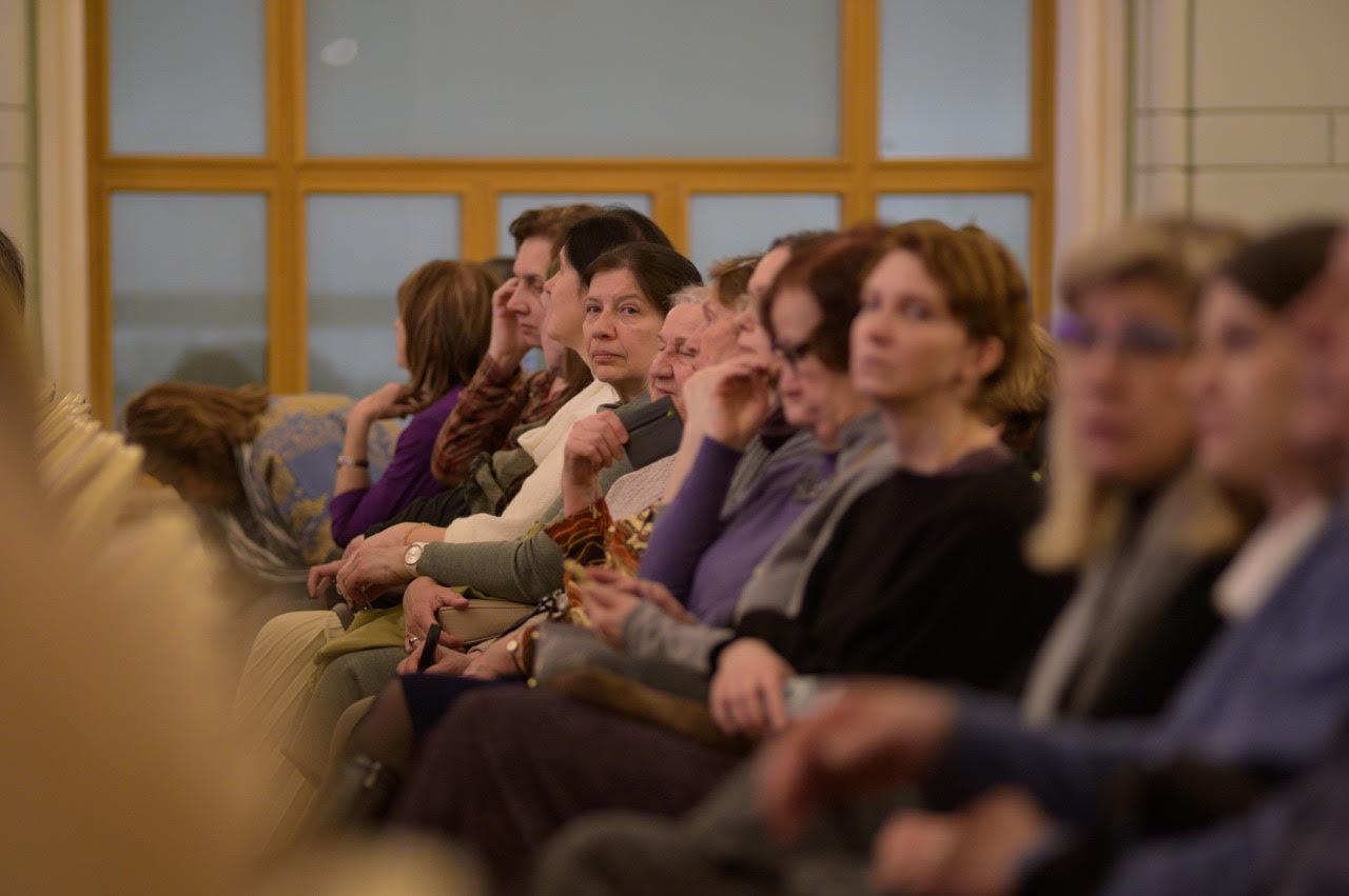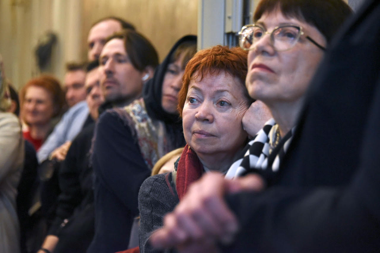 The following day, the second screening of the film “The Aroma of Holiness” took place, this time in the big hall of the Sretensky Theological Seminary. Concurrently with the screening, there was a presentation of the new edition of Archpriest Peter Perekrestov’s book of memoirs about St. John: “Pastor. Teacher. Friend.” As on the previous day, the screening drew a huge crowd.
