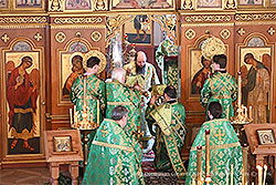 The next morning, His Eminence officiated at Divine Liturgy at St Seraphim Cathedral of the Convent "Novo-Diveevo" in Nanuet, NY. His Eminence was joined by His Grace Bishop Theodosius of Manhattan and the monastery clergy. During the service, Abbess Makaria and the sisters of the convent, as well as pilgrims, prayed.