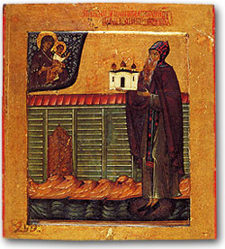 At this place the monk, with the blessing of St Nikita the Hermit (May 14), founded a monastery in honor of the Nativity of the Most Holy Theotokos. In another year, fishermen recovered the barrel containing St Anthony's inheritance, cast into the sea many years before. The saint recognized his barrel, but the fishermen did not want to give it to him. Before a judge, St Anthony described the contents of the barrel, and it was returned to him. The saint used the money to buy land for the monastery. Spiritual asceticism was combined at the monastery with intense physical labor. �