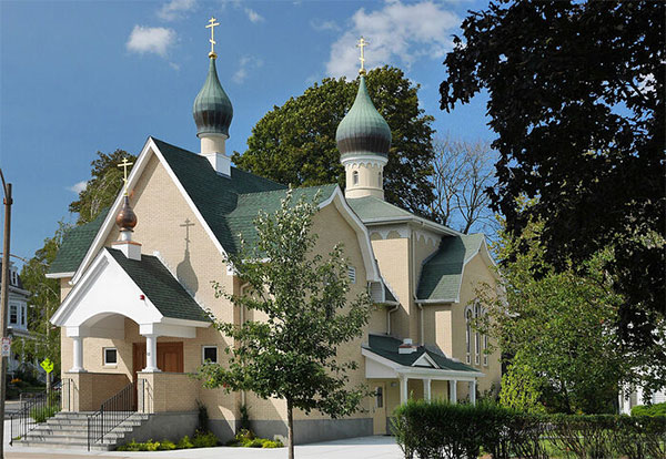 At Pentecost our Russian Holy Theophany Church in Boston resembles a Paradise garden. Blooming hydrangeas and azaleas on either side of the stairs, the beautiful church itself in an emerald attire behind the doors, in the mysterious flickering of candles, with birch branches bowing to the Theotokos and the air filled with morning dew and joy.