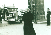 Archpriest Mitrofan Znosko in front of the hearse with the body of AI Rusin at the gates of Ben M�sik Cemetery, 1956 |