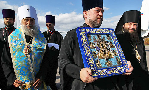 It was accompanied by representatives of the Russian Orthodox Church Outside of Russia, His Grace Bishop Nicholas of Manhattan and Protopriest Alexandre Antchoutine. What is the great power of this ancient image of the Mother of God “of the Sign?” Russian emigres credit this icon for their survival abroad. How has the spirituality of Russia changed in recent years? Why do native Americans convert to Orthodox Christianity? Vladyka Nicholas and Fr Alexandre talk with Stolica-s.su about these questions.
