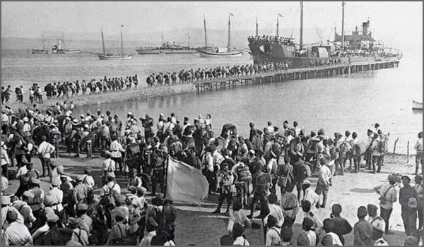 In October 1920, when the final battle with the godless communists in the South of Russia was over, General Wrangel left Crimea with a majority of the Russian people found there to the utter unknown. Up to 250 cruisers, destroyers, submarines, common ships, barges, tugboats and other vessels left the shores of Crimea.