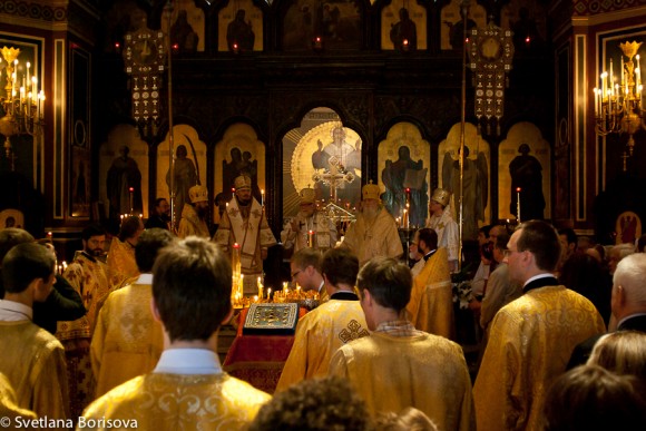 The Sunday service at St Alexander Nevsky Cathedral was celebrated by five bishops of various jurisdictions: Archbishop Gabriel of Koman, Bishop Michael of Geneva and Western Europe, Bishop Nestor of Korsun, Bishop Ignaty of Bronnitsa and Bishop Theodosius of Seattle, who led the conference.