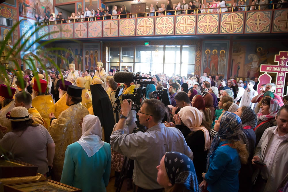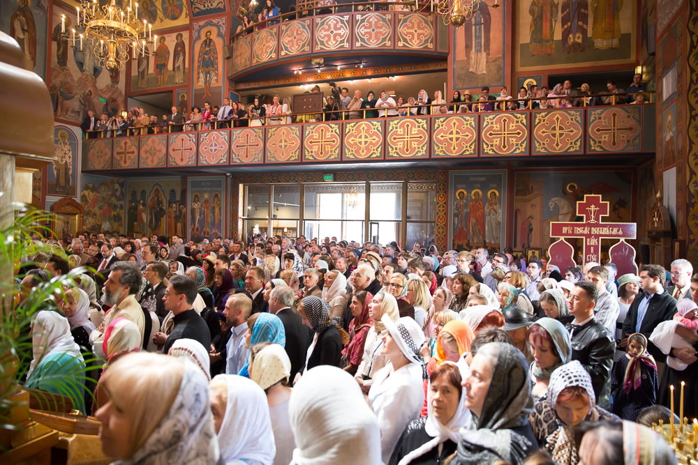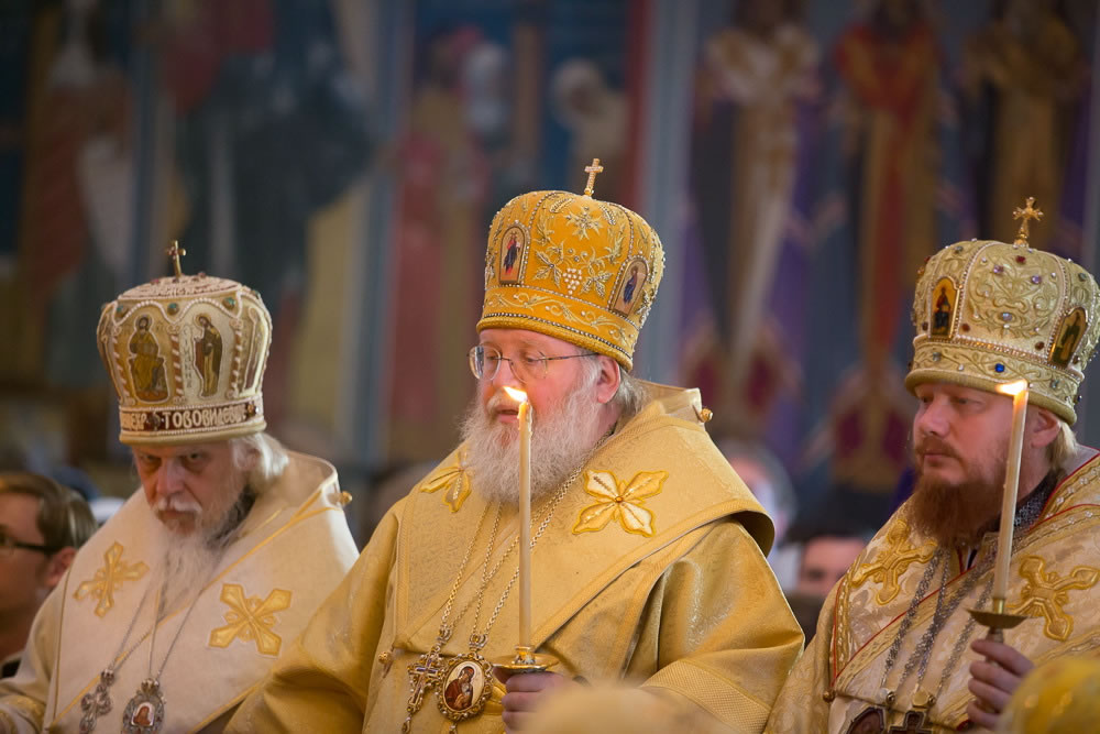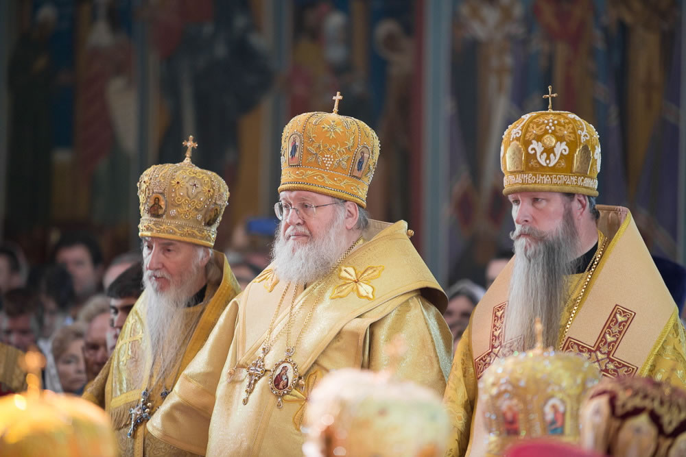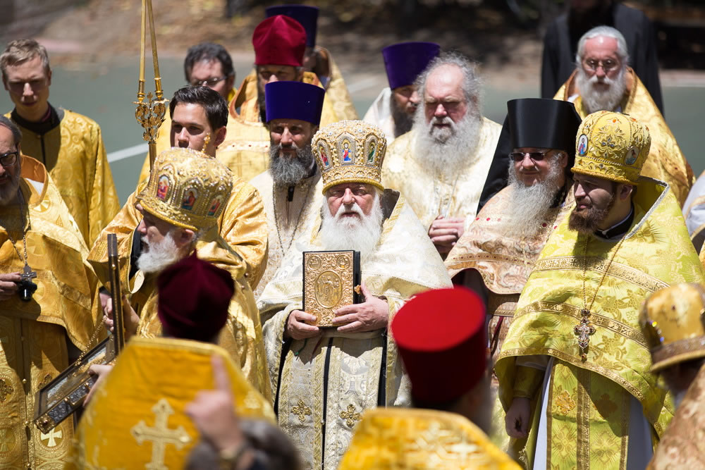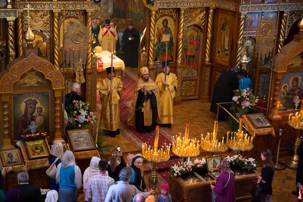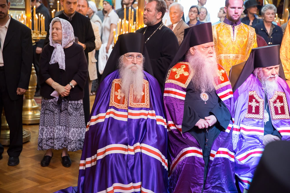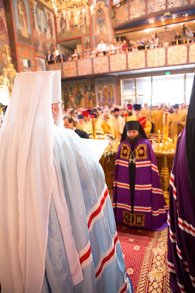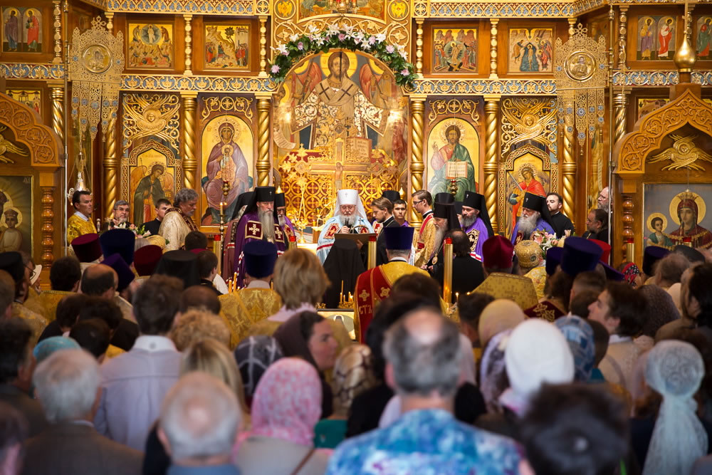 The grand Divine Liturgy on the next day was led by thirteen hierarchs headed by the First Hierarch of the Russian Orthodox Church Outside of Russia, His Eminence Metropolitan Hilarion of Eastern America and New York, along with a multitude of clergymen who gathered from literally all ends of the earth.