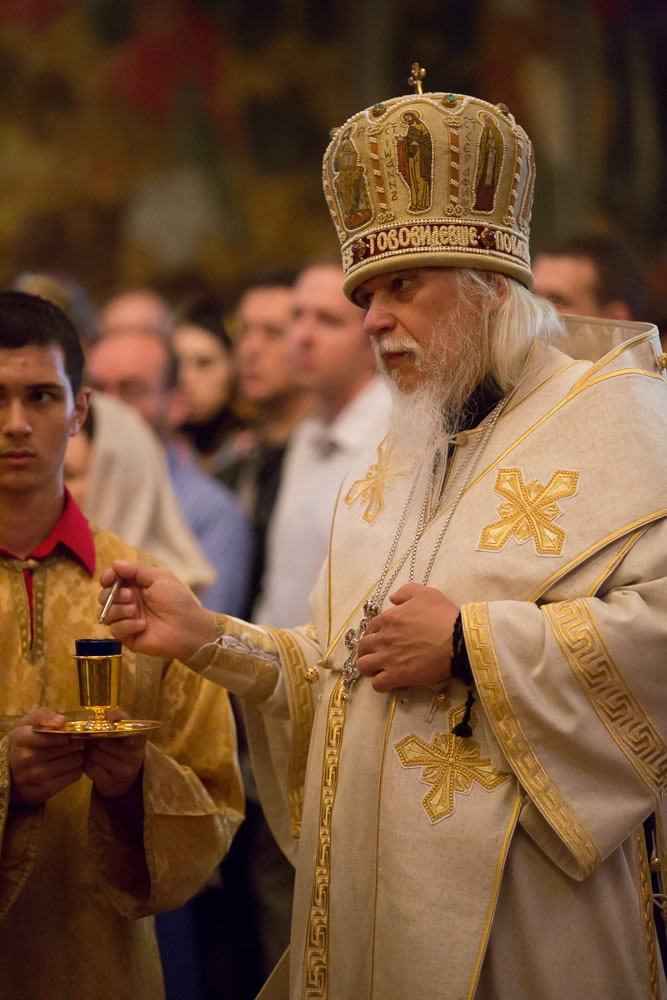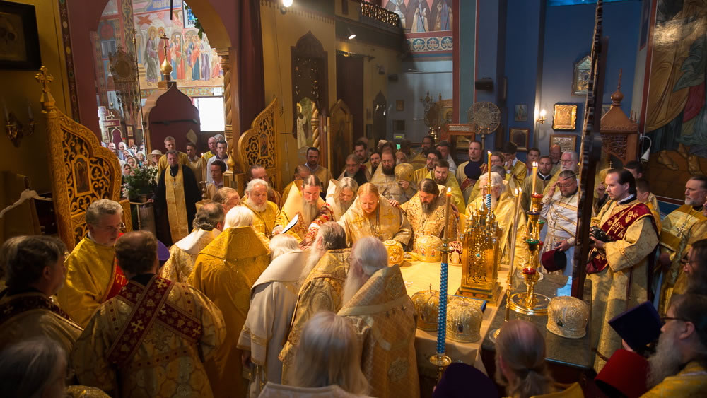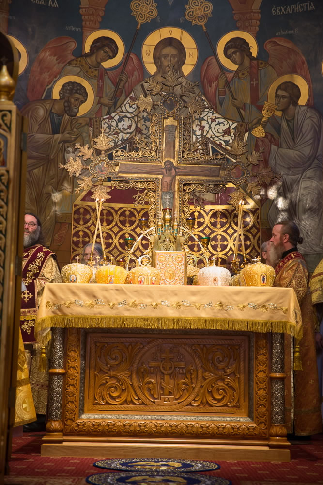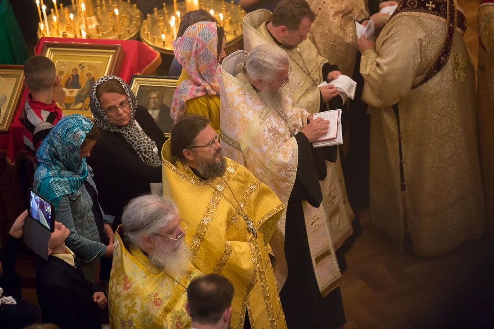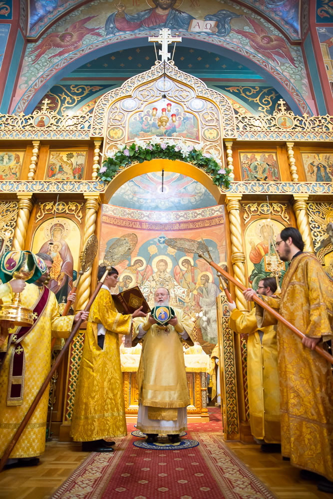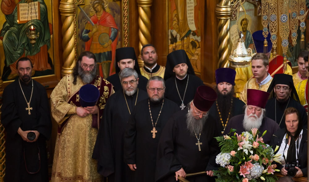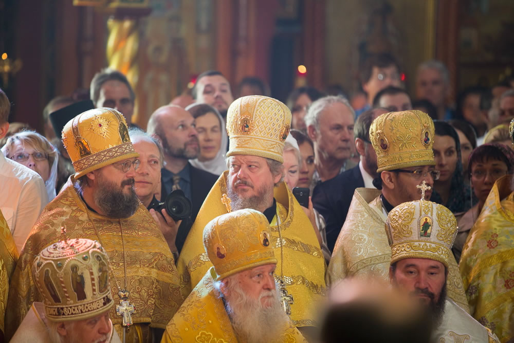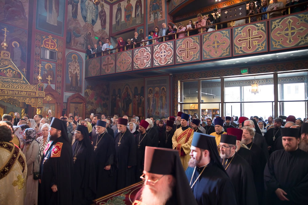 The grand Divine Liturgy on the next day was led by thirteen hierarchs headed by the First Hierarch of the Russian Orthodox Church Outside of Russia, His Eminence Metropolitan Hilarion of Eastern America and New York, along with a multitude of clergymen who gathered from literally all ends of the earth.