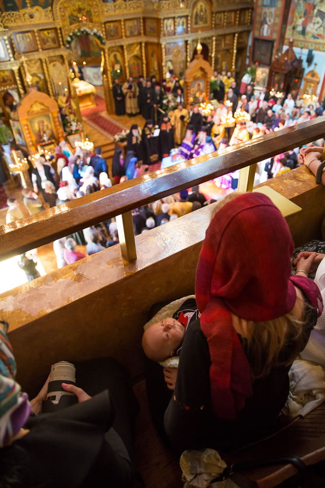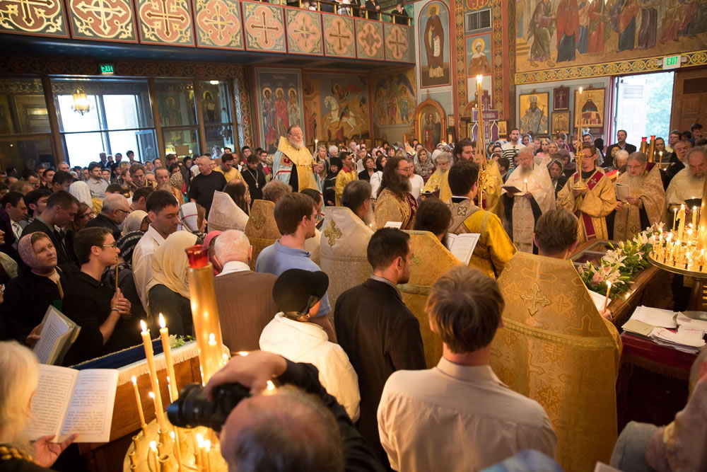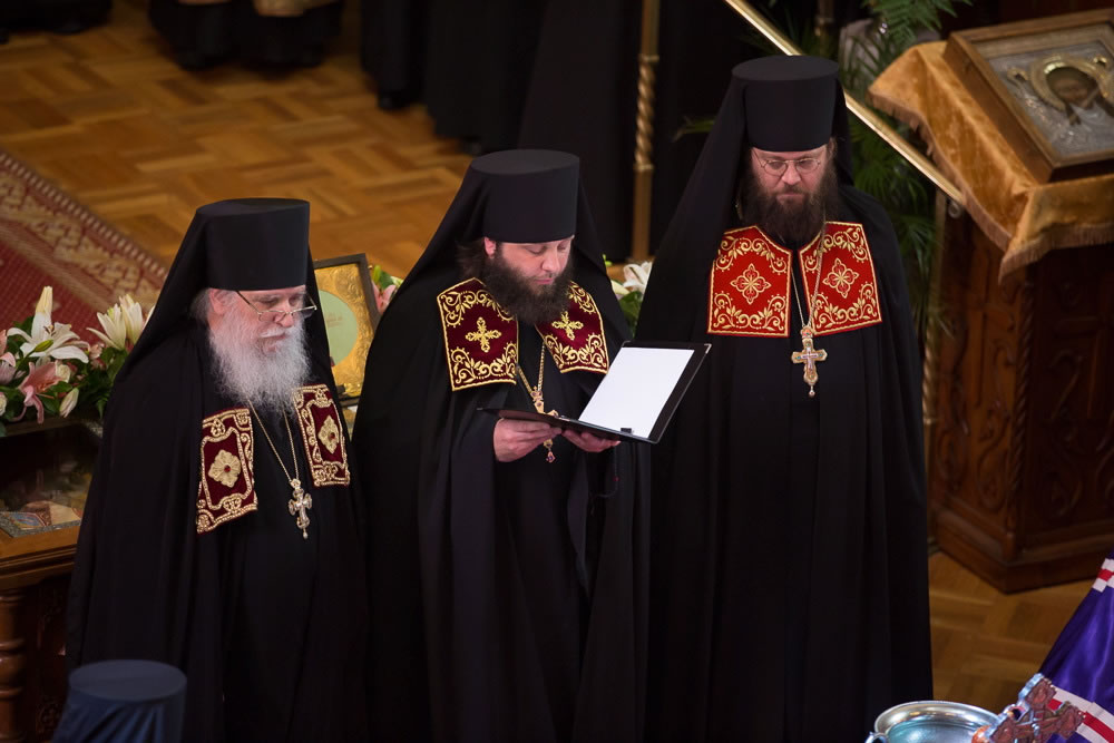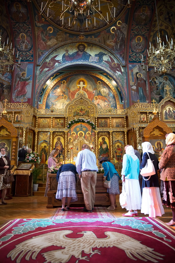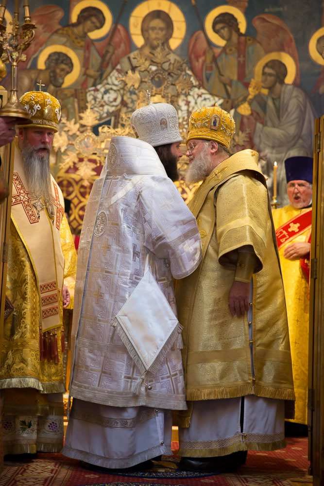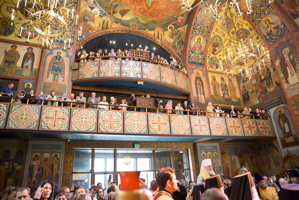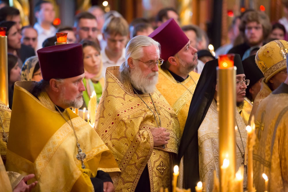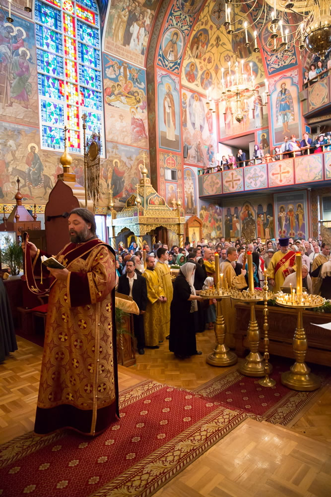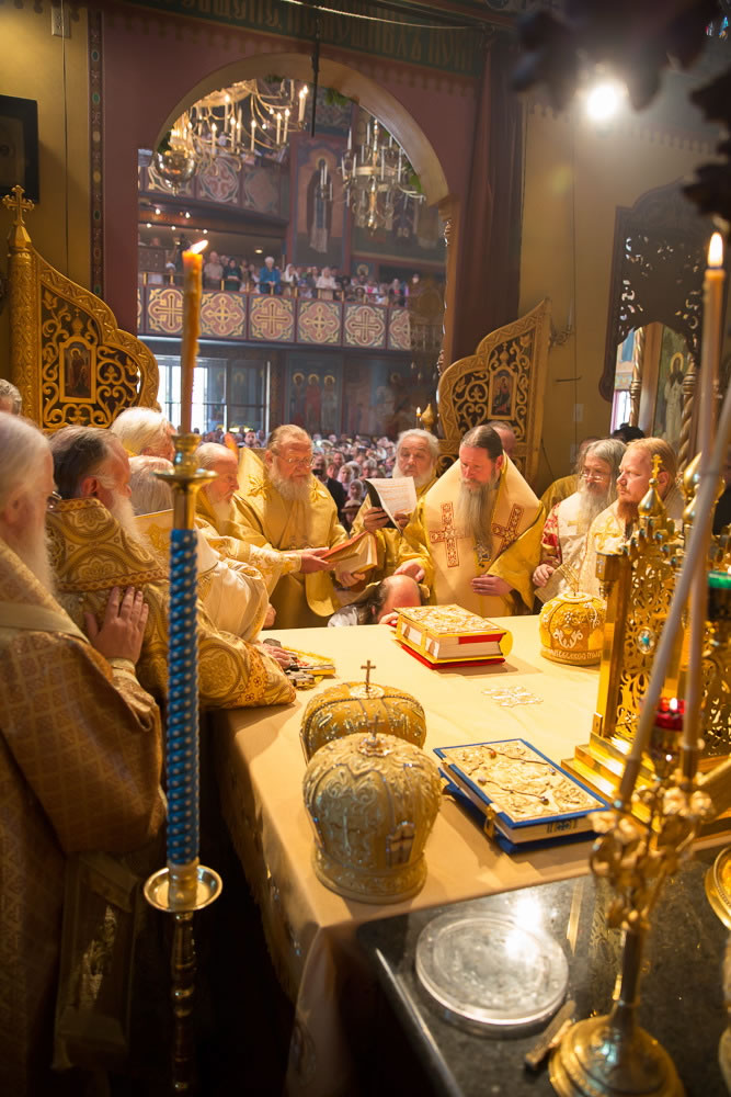 The grand Divine Liturgy on the next day was led by thirteen hierarchs headed by the First Hierarch of the Russian Orthodox Church Outside of Russia, His Eminence Metropolitan Hilarion of Eastern America and New York, along with a multitude of clergymen who gathered from literally all ends of the earth.