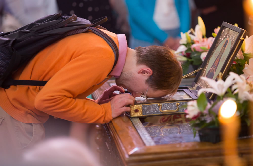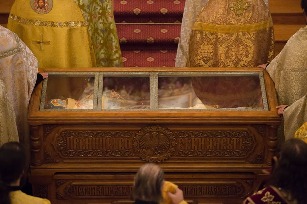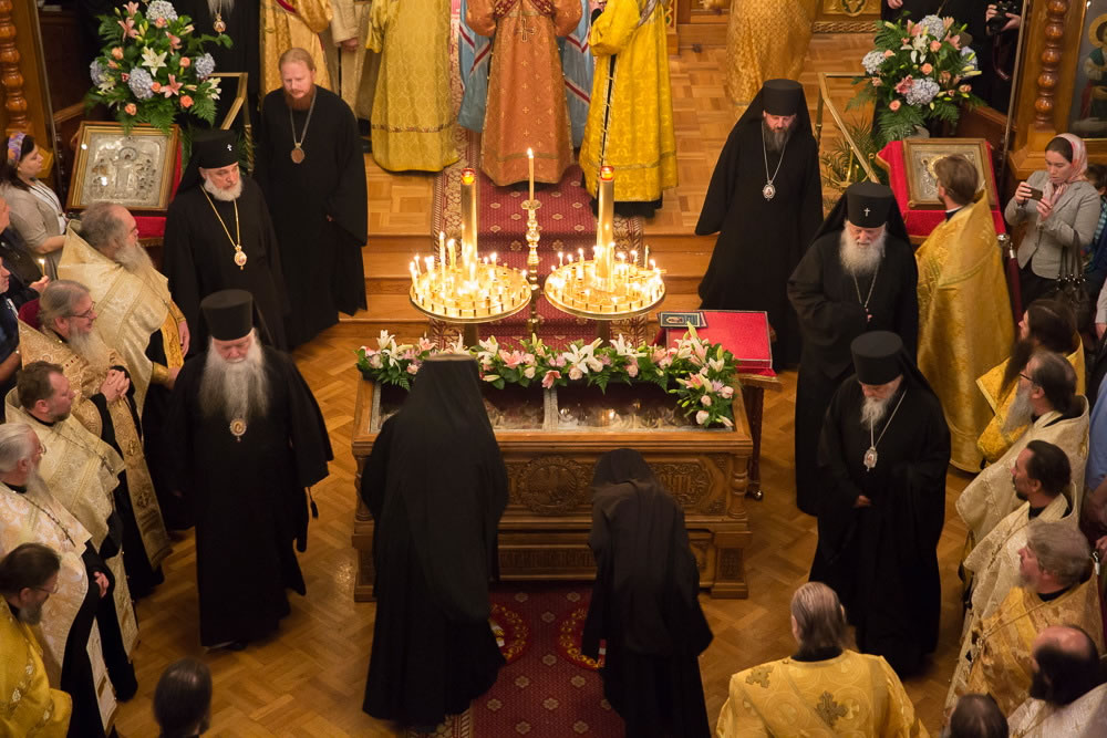 The endearing singing of the prayers to the saint before his reliquary, which contain his uncorrupt body, gathering together clergymen and Christ-loving people “with one heart and one mind” began the celebration of St John.
