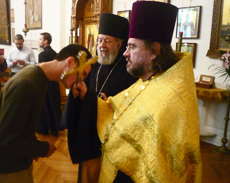 We invited Hieromonk Cyprian (Alexandrou), Dean of and teacher at Holy Trinity Seminary in Jordanville, NY, to be the main speaker; he is a native of Australia, though he spent a good amount of time in Greece. Fr Cyprian does a lot of youth work, and was a founder of the monastery�s internet site. His talk on his life and work was not so much a lecture as a discussion with the young people about what a true missionary should be and how he can bring the light of faith in Christ to the world. �
