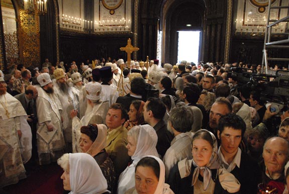 From early morning, a multitude of Orthodox Christians of Moscow and pilgrims of the Russian Orthodox Church Outside of Russia began streaming to the church.
