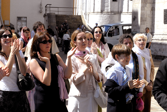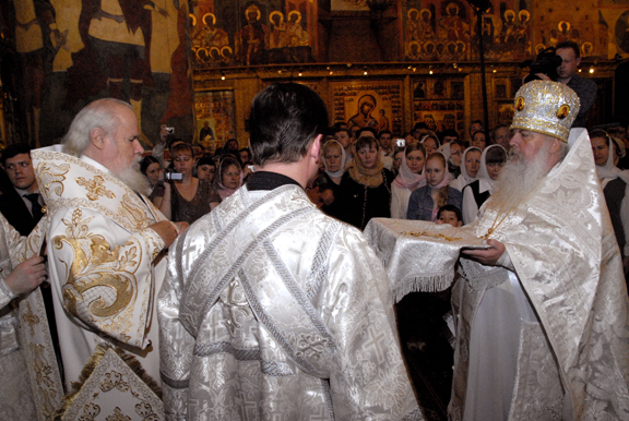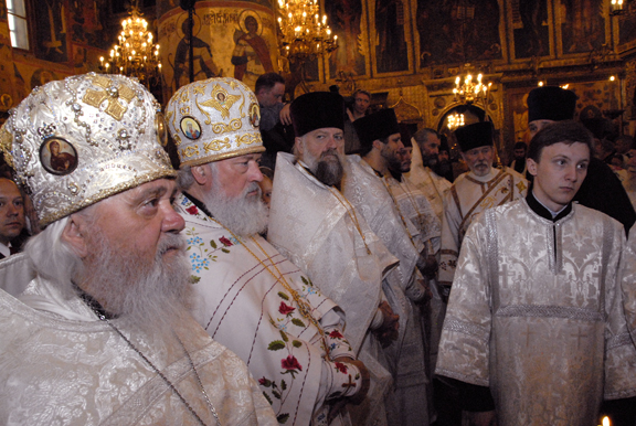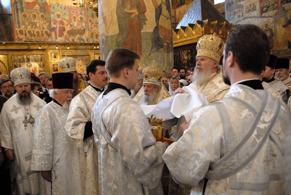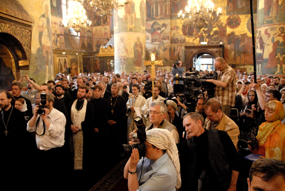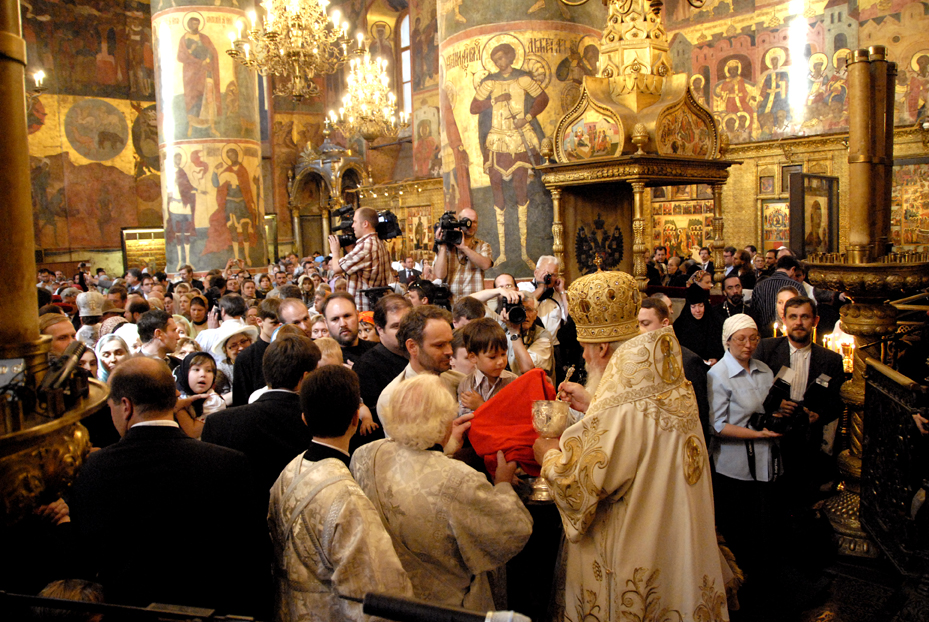 Москва: Фоторепортаж о Божественной литургии в Успенском соборе Московского Кремля и приеме, устроенном прихожанами Русской Зарубежной Церкви проживающими в Москве, в честь восстановления братского общения в Поместной Русской Православной Церкви
