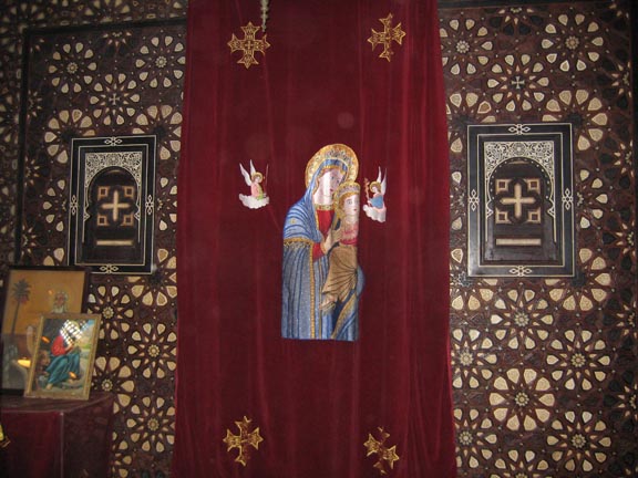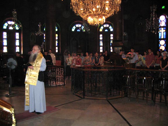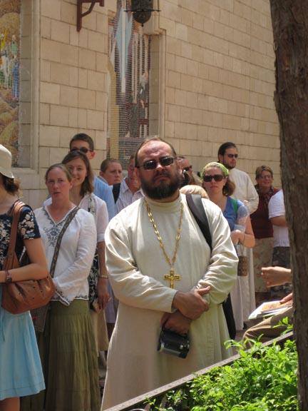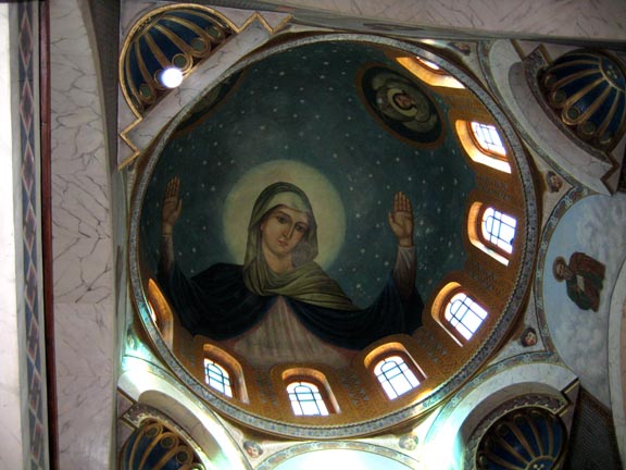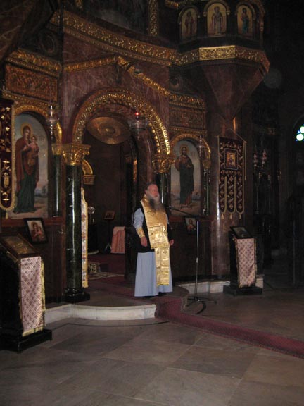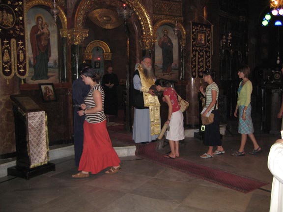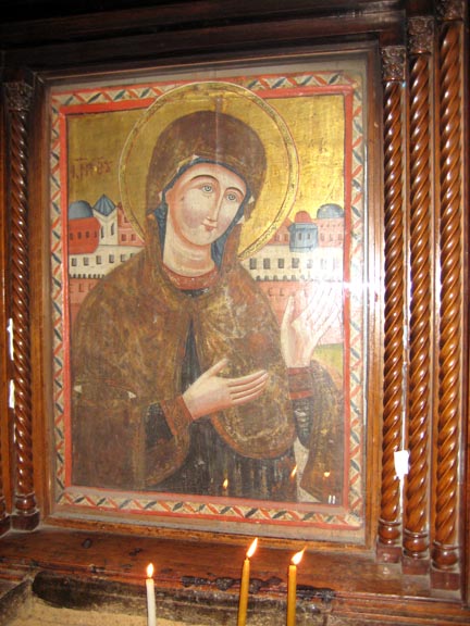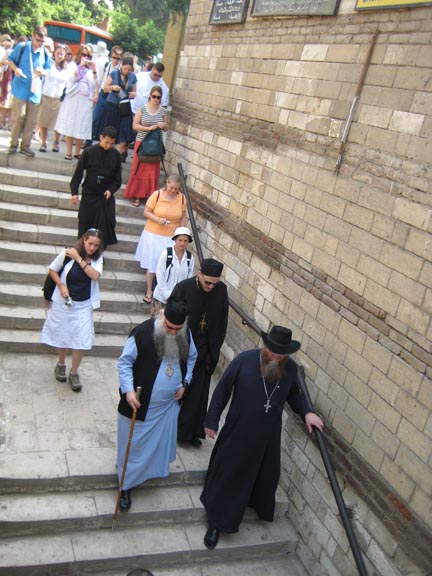 The second floor houses a church dedicated to the Mother of God, for the Holy Family lived not far from here at one time. Vladyka Peter served a pannikhida over the graves of Russians buried in the monastery.