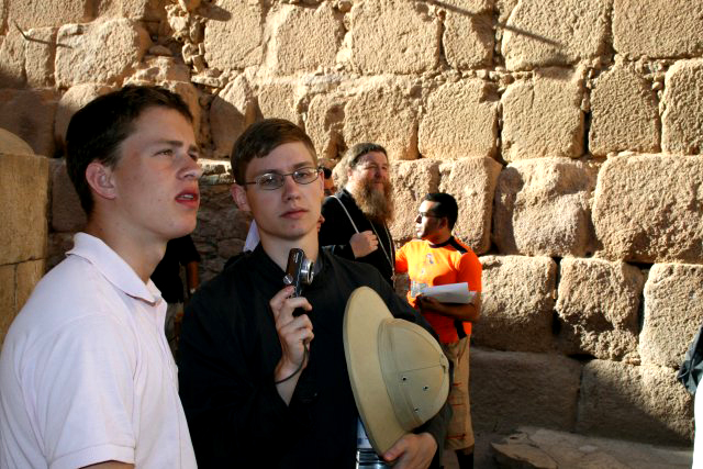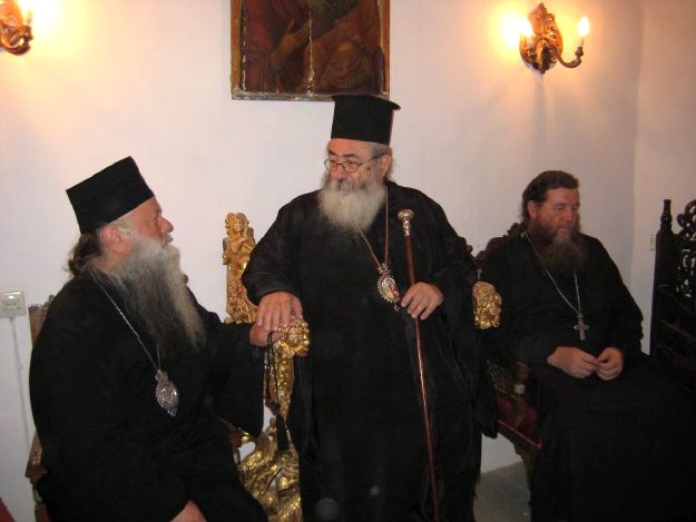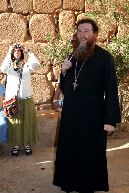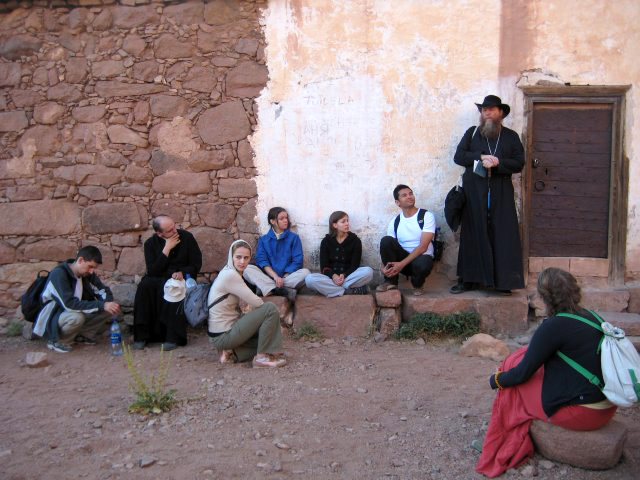 The monastery's abbot, and the head of the Autonomous Church of Sinai of the Jerusalem Patriarchate, His Eminence Archbishop Damian, lovingly welcomed the pilgrims, led by His Grace Bishop Peter. The youth choir, directed by Michael Gil, gave a concert at the reception hall of Archbishop Damian, and Deacon Eugene Kallaur intoned Many Years to His Eminence.