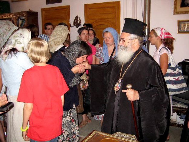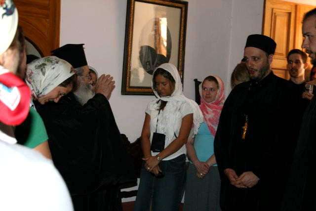 Archbishop Damian of Sinai Greets Bishop Peter of Cleveland and the Young Pilgrims of the Russian Church Abroad