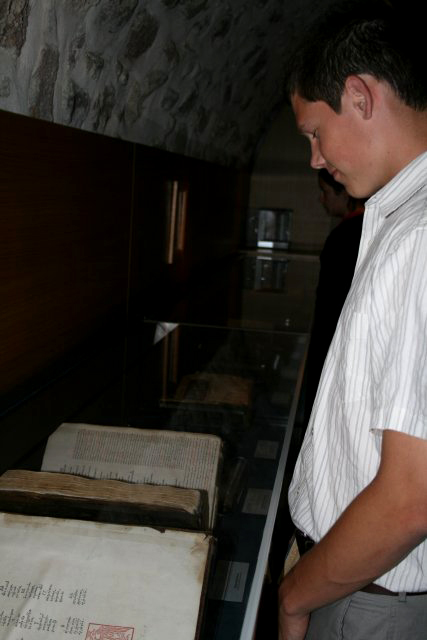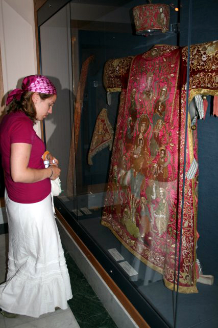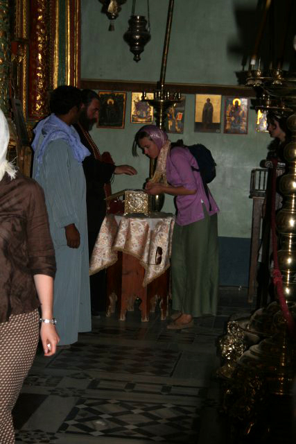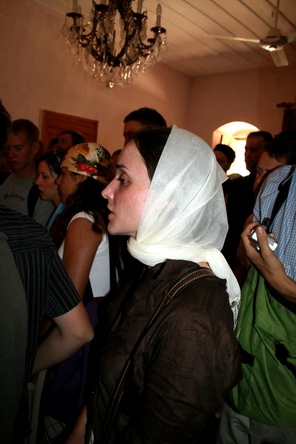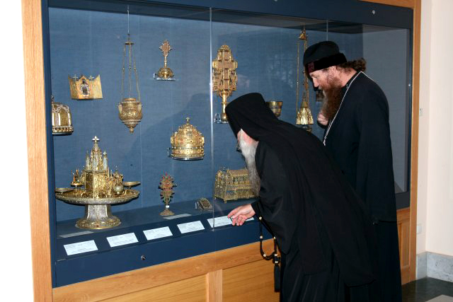 After meeting His Eminence, the pilgrims headed for the monastery museum, then to the ossiary (crypt), where the bones of the monks have been kept for centuries. Ancient tradition holds that the dead are first buried in the small cemetery, and then their bones are placed into the ossiary, skull with other skulls, the bones with the other bones. The remains of archbishops are kept in special niches. This is an ancient burial tradition of the Eastern monasteries, and developed because most of the monasteries are located in the mountains, where digging graves is difficult. Also, this tradition has a spiritual meaning for those living in the monasteries: it is a reminder of the fleeting nature of life on earth, and of the temporality of physical beauty and strength.