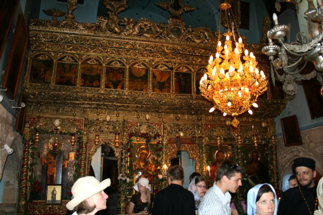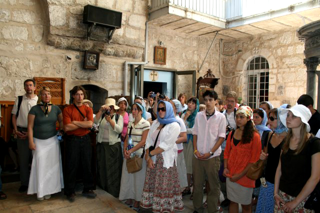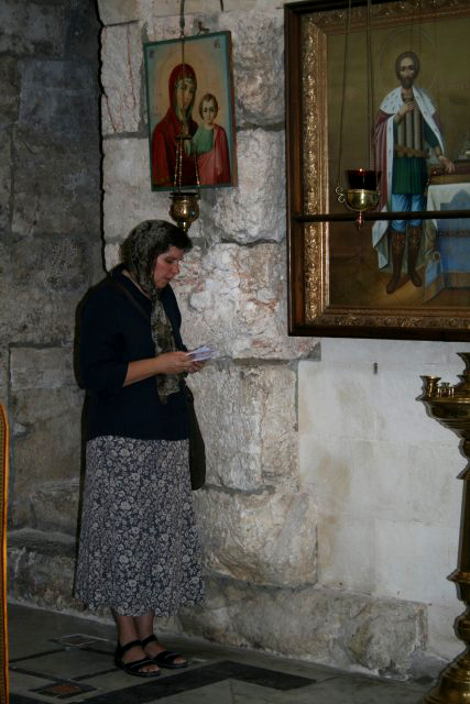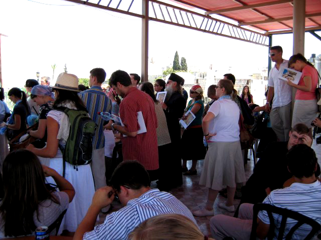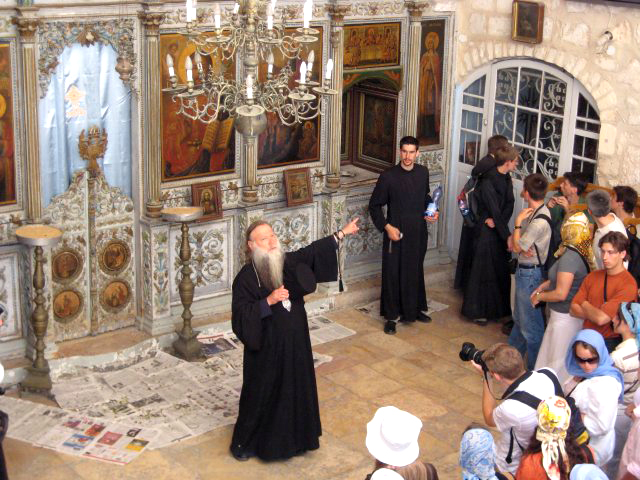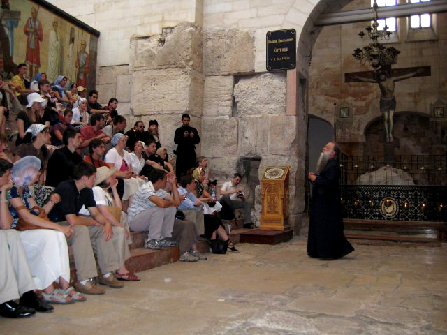On Friday, July 6, the pilgrims of the Russian Orthodox Church Outside of Russia, led by His Grace Bishop Peter of Cleveland, prayed at the Life-bearing Sepulcher of the Lord and Golgotha, and then headed for the site of the appearance of the Resurrected Christ to St Mary Magdalene, E qual-to-the-Apostles. The pilgrims venerated the relics and icons of the churches in the area and heard a profound sermon given by His Grace. They then went to the “Russian Excavations.”