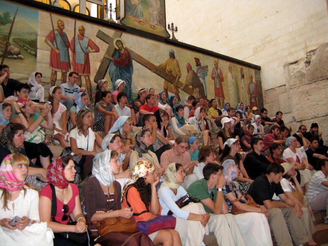 Russian clergymen from the Convent of St Mary Magdalene in Gethsemane come to this site on Great Thursday evening, after the reading of the 12 Gospels, singing and bearing candles. They are joined by the Russian residents of the Holy City, and a Passion service is conducted there on the day when the Church remembers the world-saving Passions of Her Chief, on the very site where He proceeded to Golgotha under the weight of the Cross. The “Excavations” church is served by the clergymen of the Russian Ecclesiastical Mission (Russian Church Abroad).