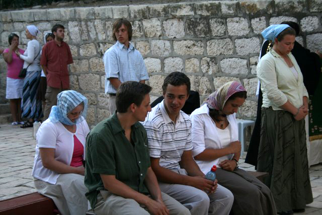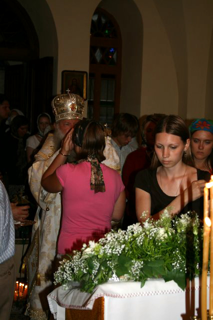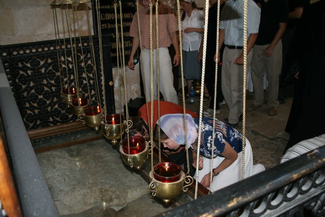 On the evening of July 6, the pilgrims prayed during all-night vigil on the eve of the Nativity of John the Baptist at Ascension of the Lord Convent on the Mount of Olives. The most noteworthy moment of this first day in Jerusalem was the singing by the young choir of Paschal prayers at the Sepulcher of the Lord, performed with piety, tears, and commemoration of their relatives and friends.