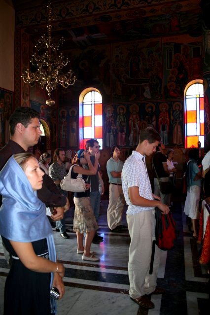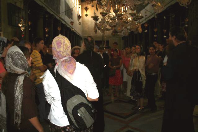 9 июля паломники Русской Зарубежной Церкви во главе с епископом Кливлендским Петром помолились и причастились Святых Христовых Таин за Божественной литургией, совершенной иерейским чином в пещере Рождества Христова. Затем Его Преосвященство совершил молебен в храме на Поле Пастухов, после чего паломники направились в монастыри преподобных Феодосия и Саввы Освященного. Для молодых певцов особенно отрадно и умилительно было поклониться пещере преподобного Иоанна Дамаскина, подвизавшегося в монастыре преподобного Саввы и составившего здесь пасхальный канон и другие церковные песнопения. Во всех святых местах епископ Петр рассказывал об истории и духовном значении святынь и отвечал на вопросы молодежи. В тот же день вечером протоиерей Гавриил Макаров, настоятель Николаевского собора в г. Брисбене (Австралия), провел беседу с паломниками о браке и семейной жизни.